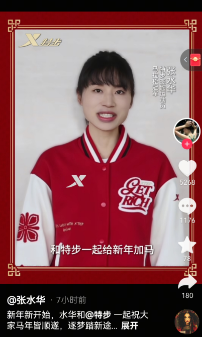 北京贝壳财经讯 2月15日,据@tep步以及张水华抖音个人账号显示,张水华正式成为特步品牌签约运动员。据透露,这将是张水花从医院退休后的第二份品牌合约。今年1月2日,被誉为“最快护士”的张水花正式宣布从医院退休。 2月10日,本土运动眼镜品牌“Hyper Run”宣布,张水华与该品牌签订精英运动员合同。张水花个人抖音账号截图。徐谦编辑